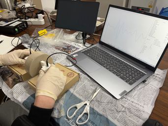 평과 결과를 바탕으로 초음파 시험을 최적의 비파괴 기법으로 선정했다. 초음파 시험은 높은 대역의 주파수를 활용하여 블록 내부의 미세한 불균질성까지 정밀하게 탐지 가능하다. 또한 젤을 바르지 않고 Dry Point 탐촉자를 활용함으로써 실제 적용 환경에서 대규모 블록이나 복잡한 형상에 대해서도 반복적이고 효율적인 시험 수행이 가능하다. 다른 후보 기법으로는 초 분광 근적외선 카메라 기법과 감마선 기법이 고려되었다. 초분광 근적외선 카메라는 비파괴적으로 표면 분석에 강점을 보였으나, 시료 내부까지 촬영이 불가능하다는 한계가 있었다. 감마선 기법은 높은 투과력을 가지고 있지만 최근 핵종 수입 금지와 핵종의 반감기 초과로 인해 측정값의 신뢰도가 떨어지고, 장비 운용의 어려움으로 인해 최종적으로 제외한다.