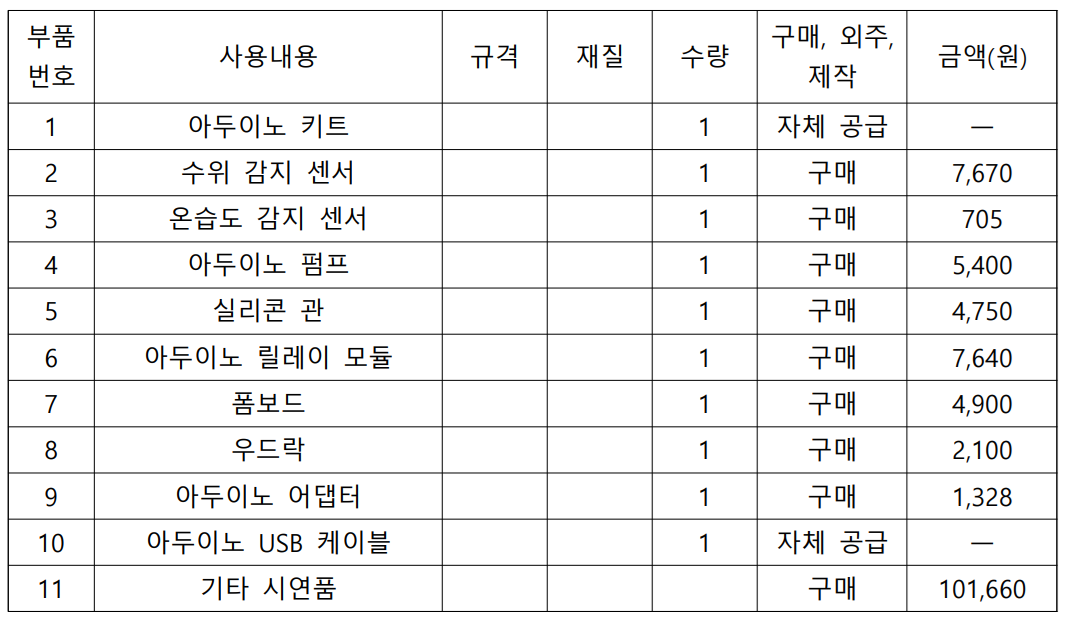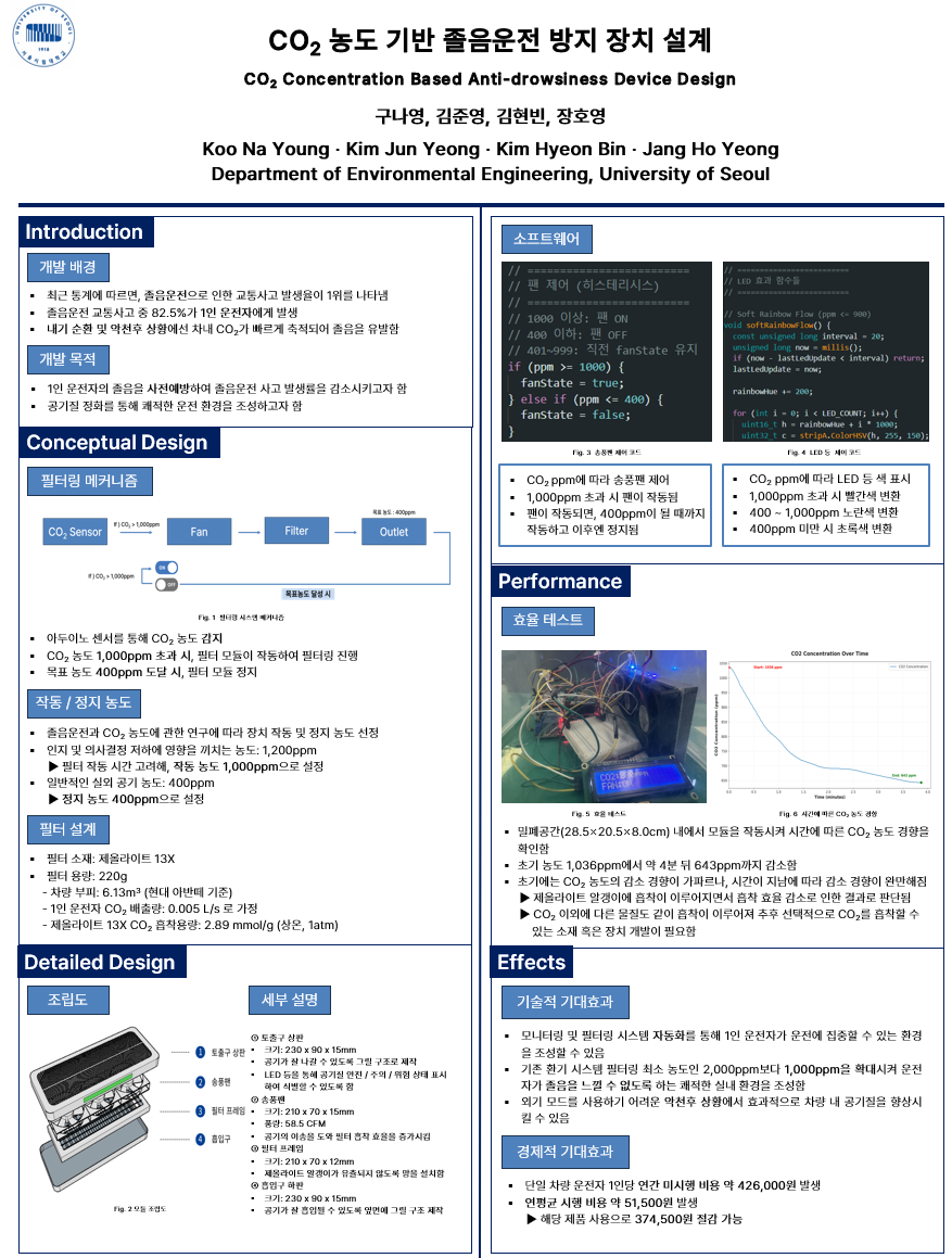 | 2025년 12월 22일 (월) 08:48 | 시제품 모형.jpg (파일) | 342 KB | 25env02 | 위 모형은 지하주차장의 주차구획 한 칸을 모사한 것이며, 표지된 MQ-7(CO), HC-SR04(초음파), AM1002(PM-10, VOC) 센서들로 통합 회로를 구축하였다. 또한, 차량 혹은 농도 감지기준 중 한 가지 이상 충... | 1 | |