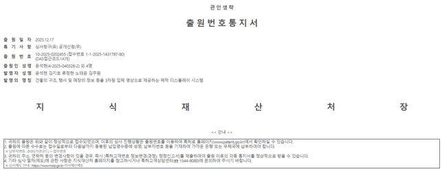 - 대형 복합공간 내 중대형 체적 디스플레이 구현 기술 확보: 기존 소형 디스플레이의 한계를 넘어, 실제 공간에 적용 가능한 스케일의 Volumetric Display 구축 노하우 축적