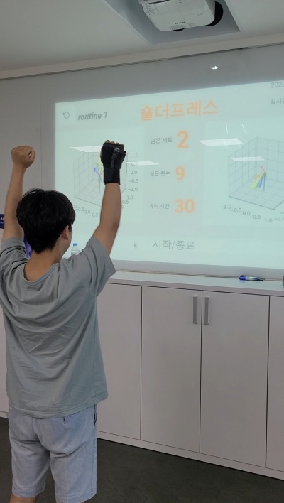 본 프로젝트는 관성 측정장치(이하 IMU)와 압력센서(이하 FSR)를 결합한 운동 보조 장갑을 이용하여 기본 손목 보호 기능과 동시에 운동 개수 측정, 운동 동기부여 알림, 운동 통계 제공 등을 통해 사용자의 운동 상황을 돕는 것을 목표로 한다. 터치스크린을 통해 사용자는 운동 종류와 개수 등의 내용을 담은 운동 루틴을 직접 설정하고 운동을 시작할 수 있다. 운동 중에는 IMU, FSR의 데이터를 활용한 운동 개수 측정 알고리즘을 통해 수행한 운동개수를 측정하고, 손등과 손목에 있는 2개의 IMU의 Roll, Pitch, Yaw를 통해 얻어진 손목 꺾임 각도를 벡터시각화로 사용자에게 보여준다. 운동 보조를 위해서 진행 시간동안 지속적으로 운동이 실시되지 않는 경우에는 스피커를 통해 운동 격려 알림을 전달한다. 운동을 완료한 후에는 손목 꺾임 각도, 운동 개수, 시간, 칼로리 등의 운동 기록 통계를 달력 형태로 쉽게 확인할 수 있다.