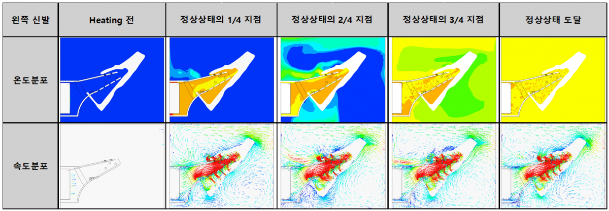 이를 통해, 히터부에서 토출된 공기가 덕트의 형상에 방해받지 않고, 중간에 뚫어놓은 구멍을 통하여 의도한대로 신발 안쪽까지 유동이 잘 전달되고 있음을 알 수 있으며, 이는 건조시에 잘 마르지 않는 신발 안쪽을 효과적으로 건조시킬 수 있음을 나타내고, 설계한 덕트의 형상이 합리적임을 알 수 있다.