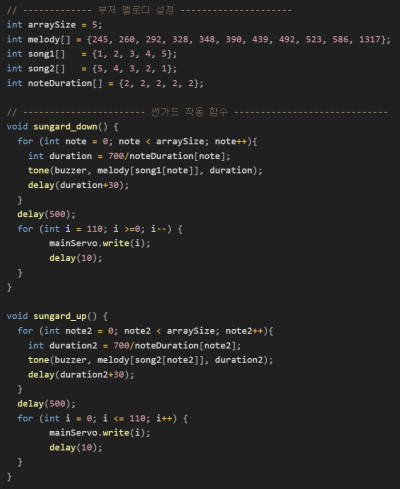 햇빛 인식을 통해 접혀있던 선바이저가 펴지는 상황에서, 사용자에게 동작 여부를 직관적으로 알리기 위해 피에조 부저를 적용하였다. 부저는 아두이노 메가의 제어 신호에 따라 작동하며, 소리를 통해 사용자에게 선바이저 동작 여부를 즉각적으로 전달한다. 이는 운전 중 시각적인 확인이 어려운 상황에서도 청각적 피드백을 통해 사용자의 인지성을 높이기 위함이다.