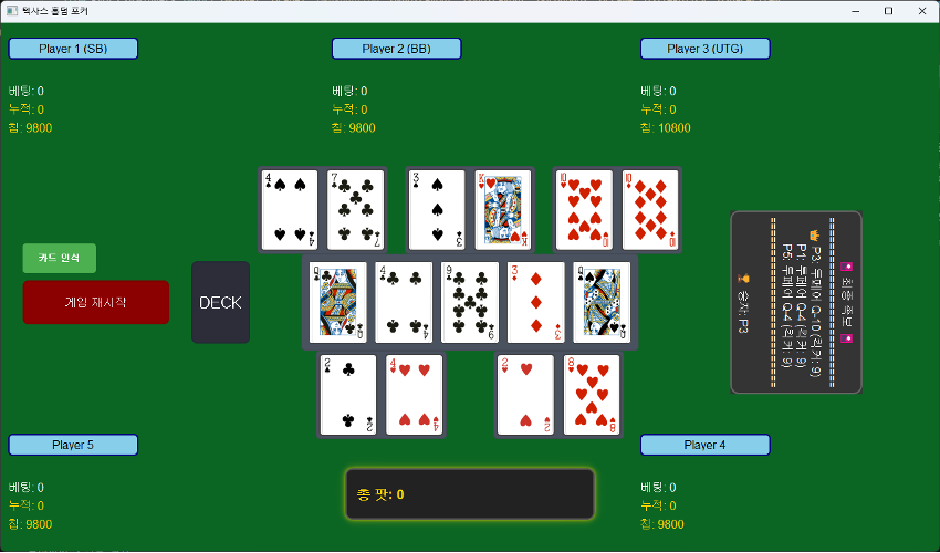 - 중앙 커뮤니티 카드 배치 (카메라 인식 범위 고려)