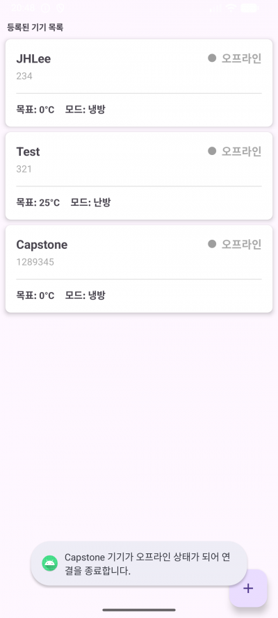 - 소프트웨어: 안드로이드 앱을 통해 사용자가 직관적으로 냉방/난방 모드를 선택하고 온도를 조절할 수 있으며, 배터리 상태와 현재 온도가 실시간으로 시각화됨.