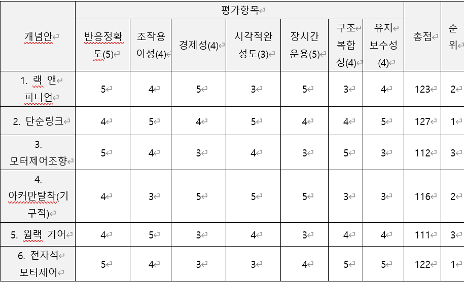 2025년 12월 17일 (수) 08:062025년 12월 17일 (수) 08:06 판의 섬네일915 × 559 (43 KB)Admse55 (토론 | 기여)표 18 조향부 및 아커만 탈착 방식 설계안 평가 내용