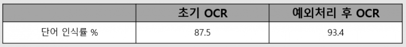 20개의 상품 이미지를 5번 반복 촬영하여 총 100개의 이미지에 대한 OCR을 진행한다. 단어 기준으로 인식률을 측정하여 %로 표시한다.
