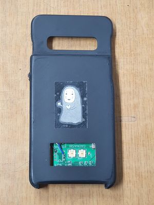 - 케이스 본체 상판의 홈에 무선충전 모듈을 고정시킨다. 이때, 무선충전 모듈은 스마트폰의 무선배터리 공유 기능에 모듈이 인식될 수 있게끔 위치를 조정해야한다.